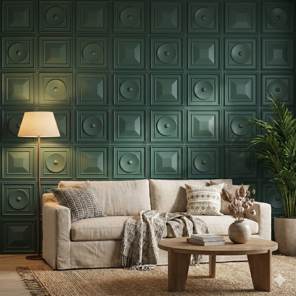 • Edge framing: Subtle perimeter border framing the textured central panel.