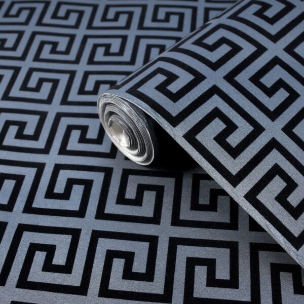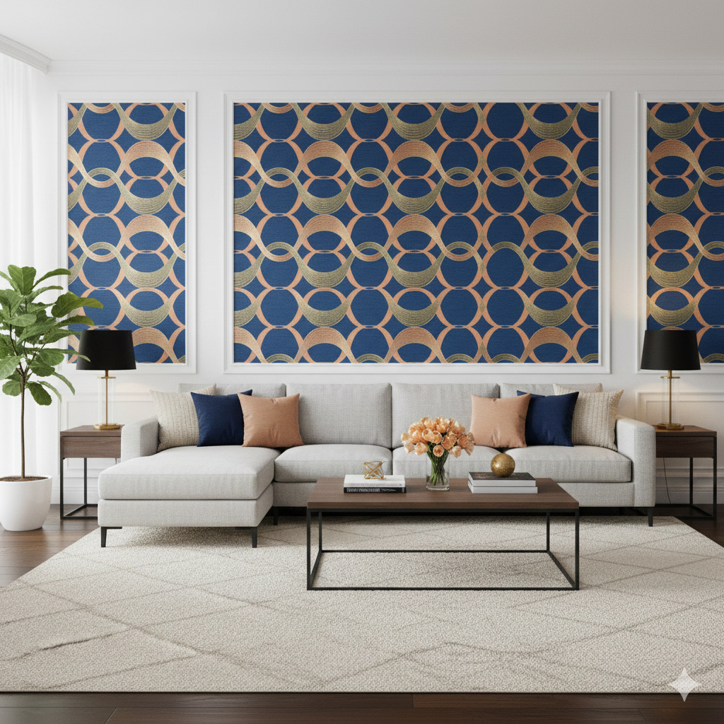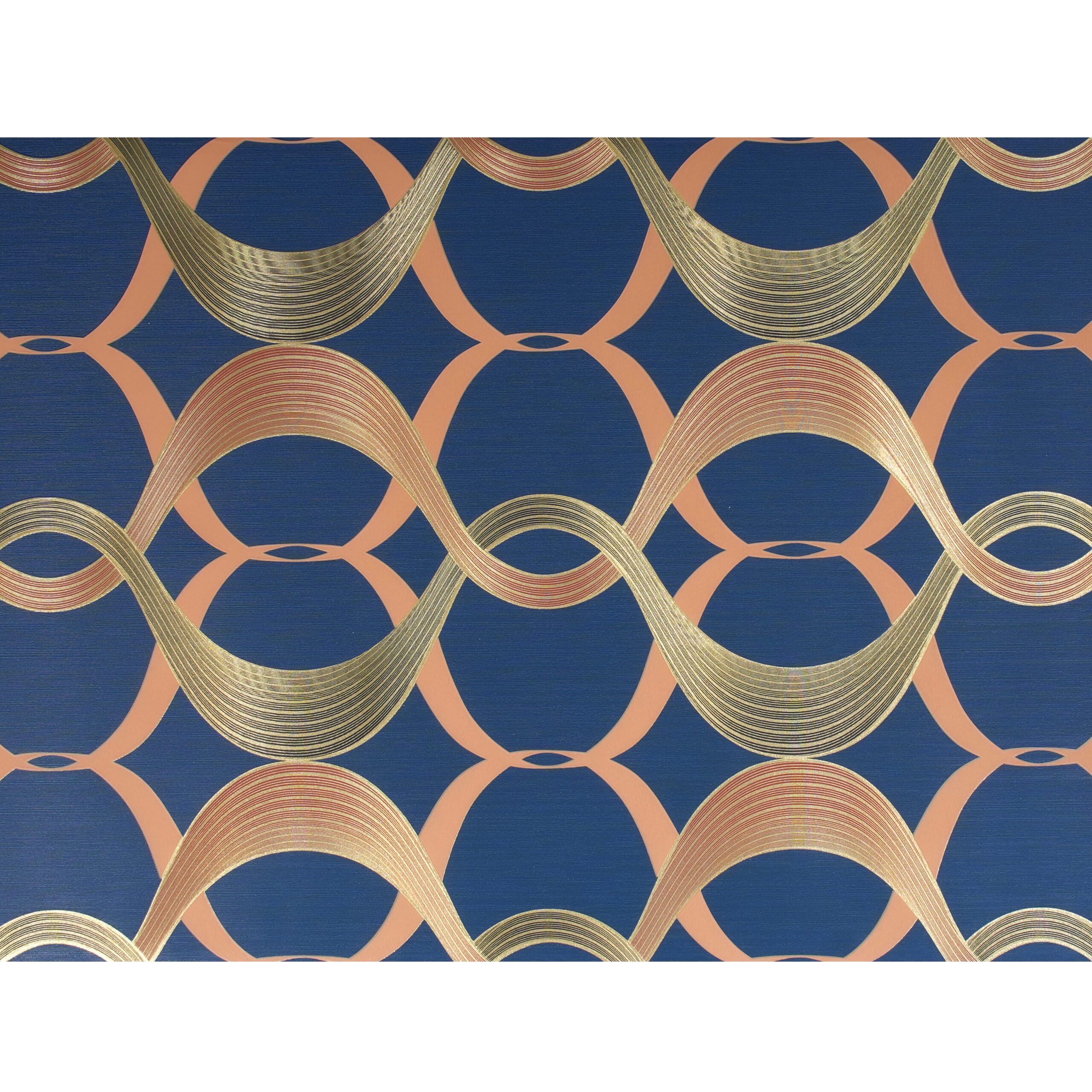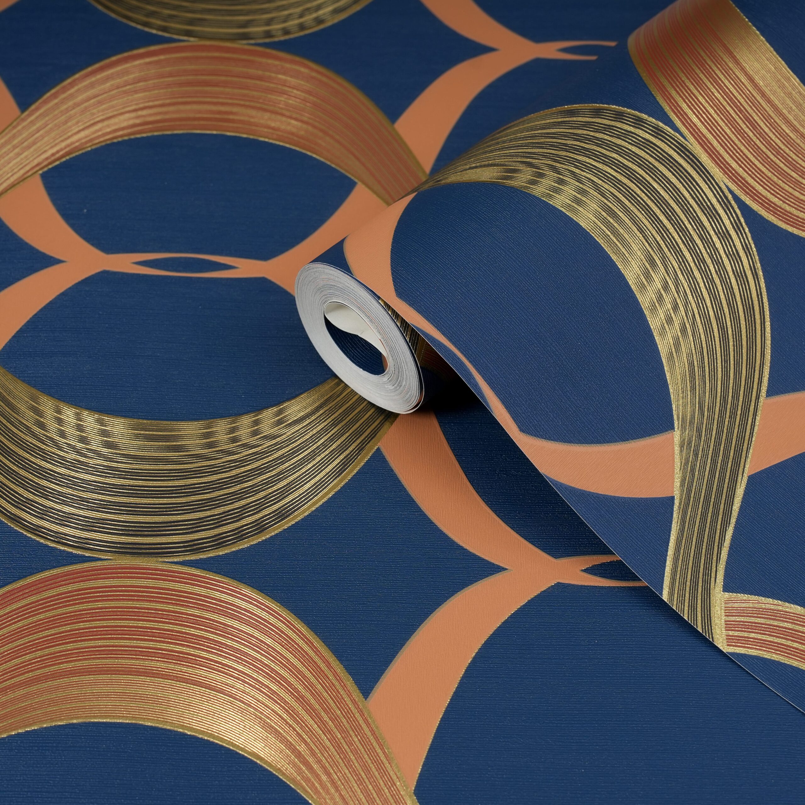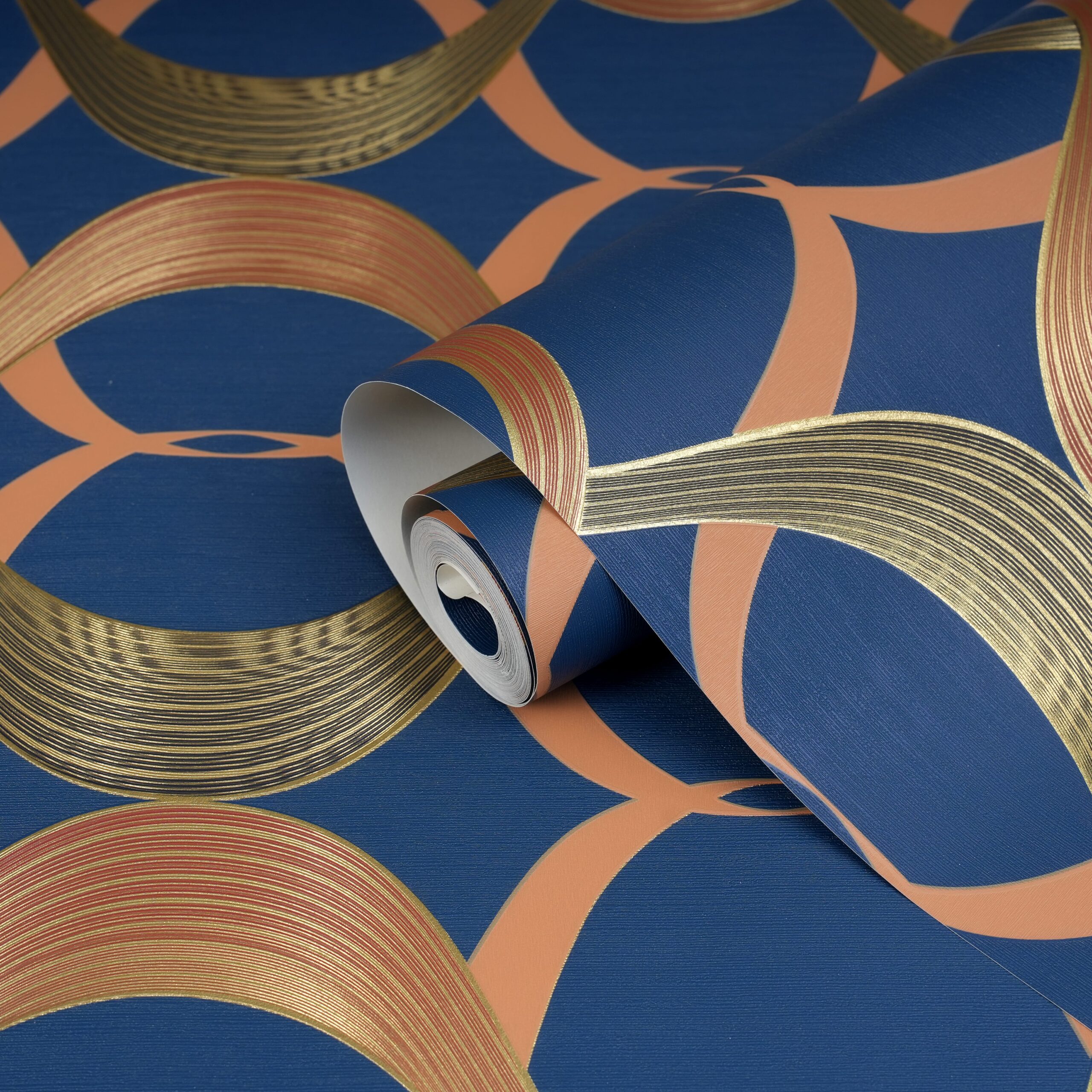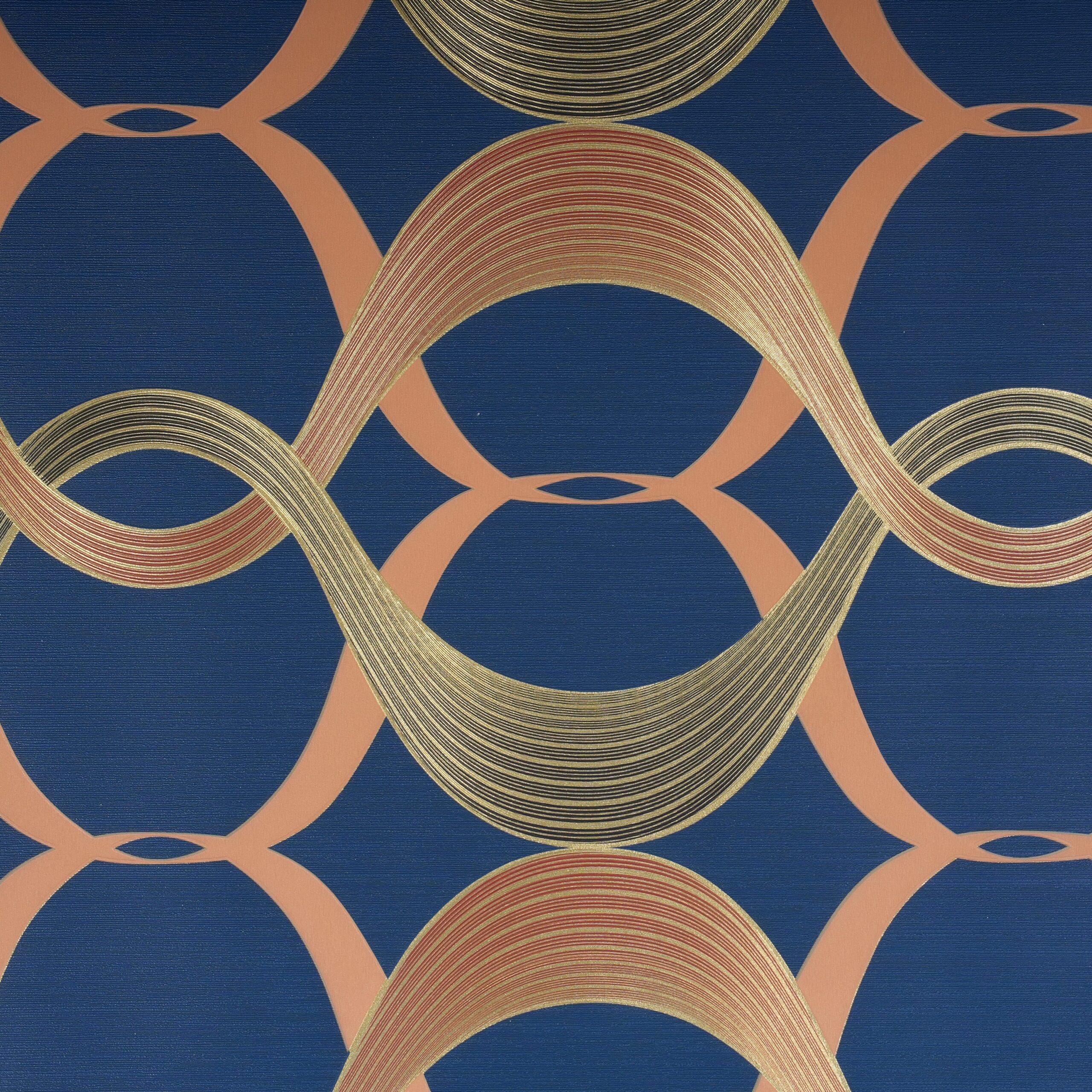 Blue Art Deco-inspired Modern Design Wallpaper with Golden Arcs