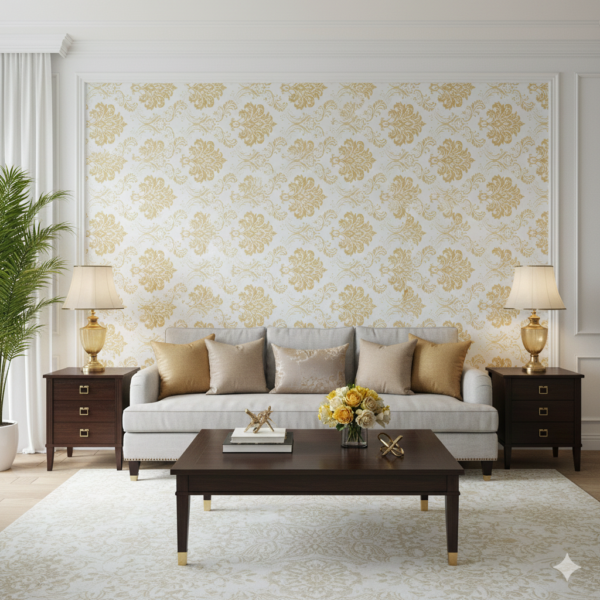Floral Fantasy in Shades of Gold Self Adhesive Wallpaper