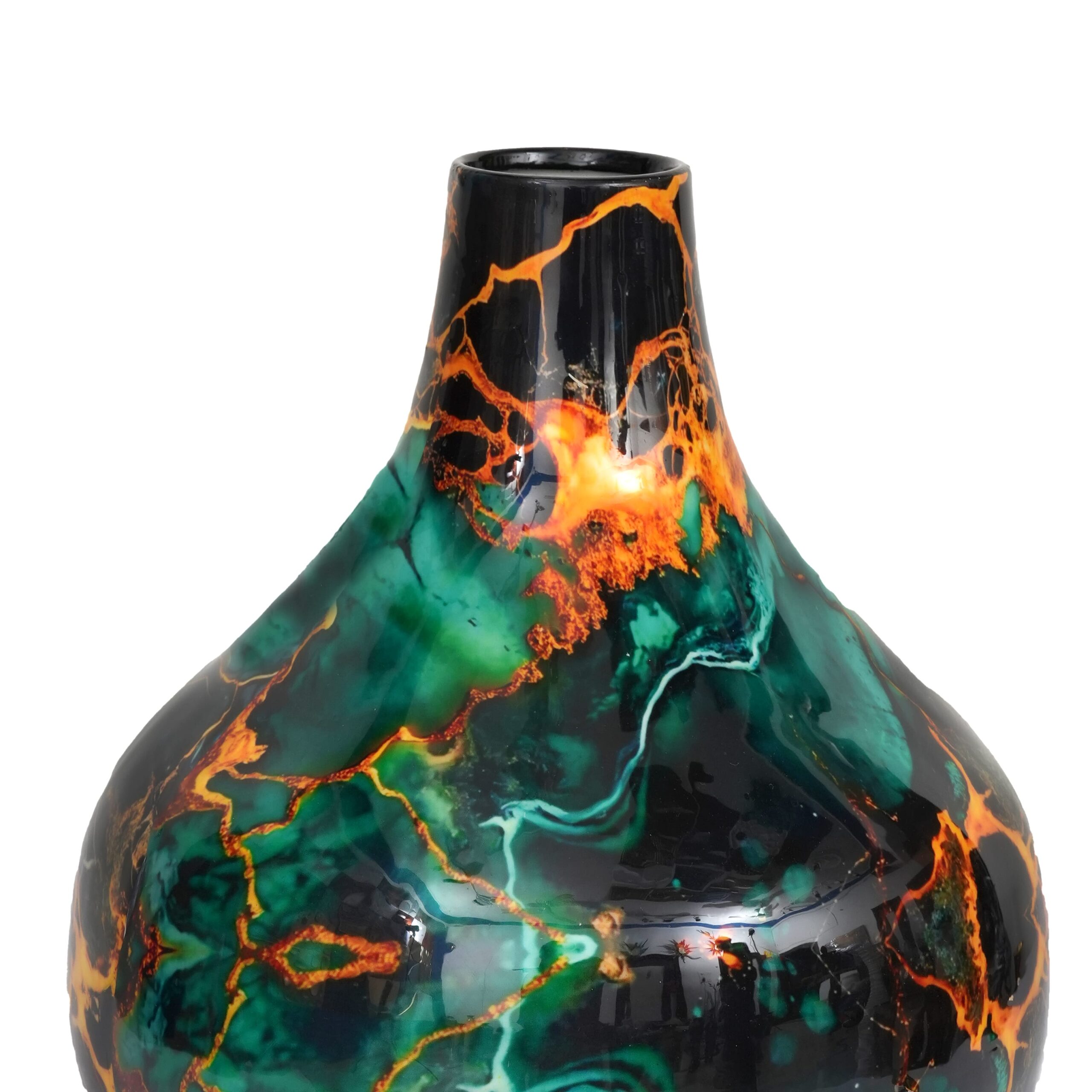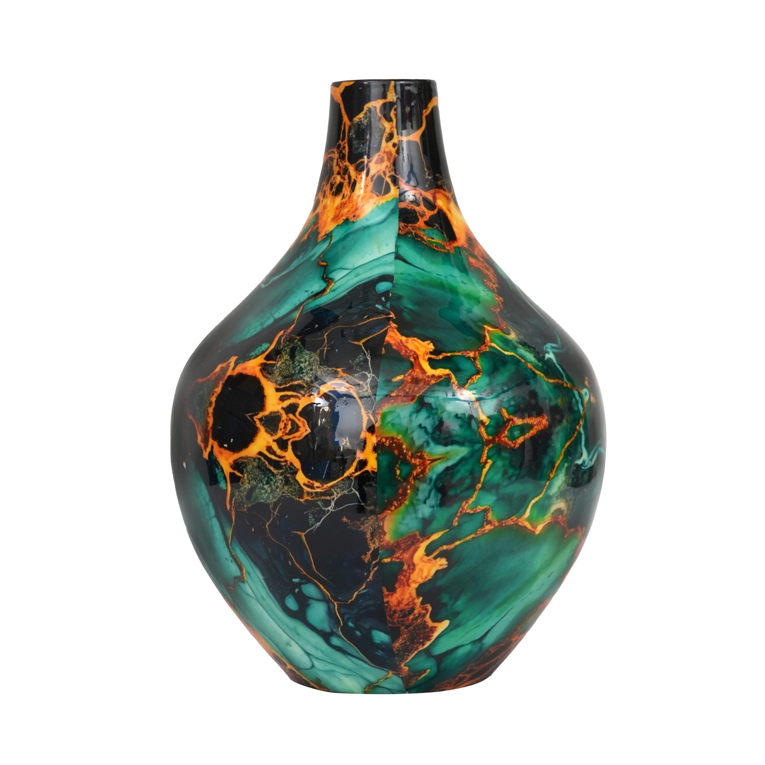 High Gloss Stone Inspired Emerald Green Black & Rich Teal Tones Metal Vase