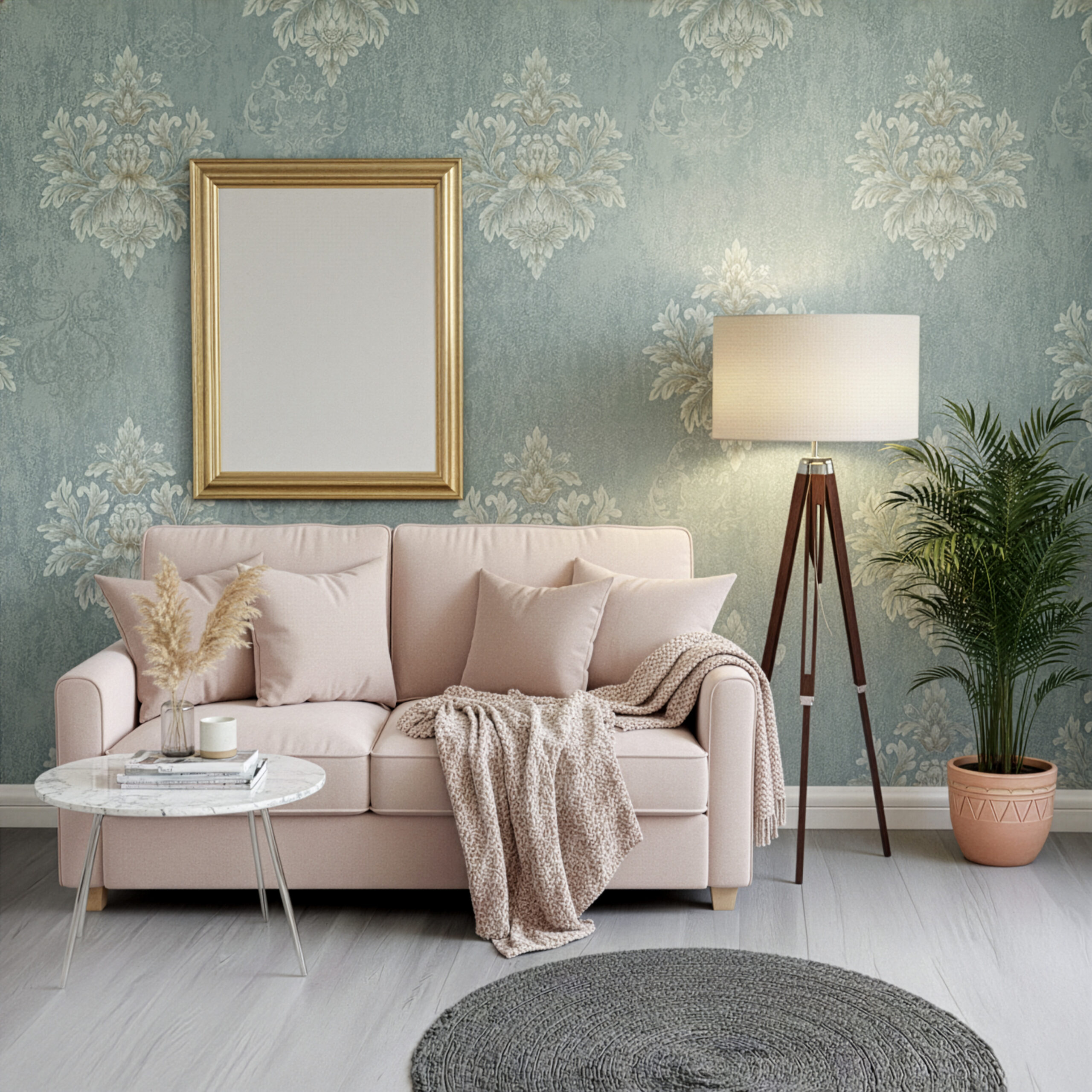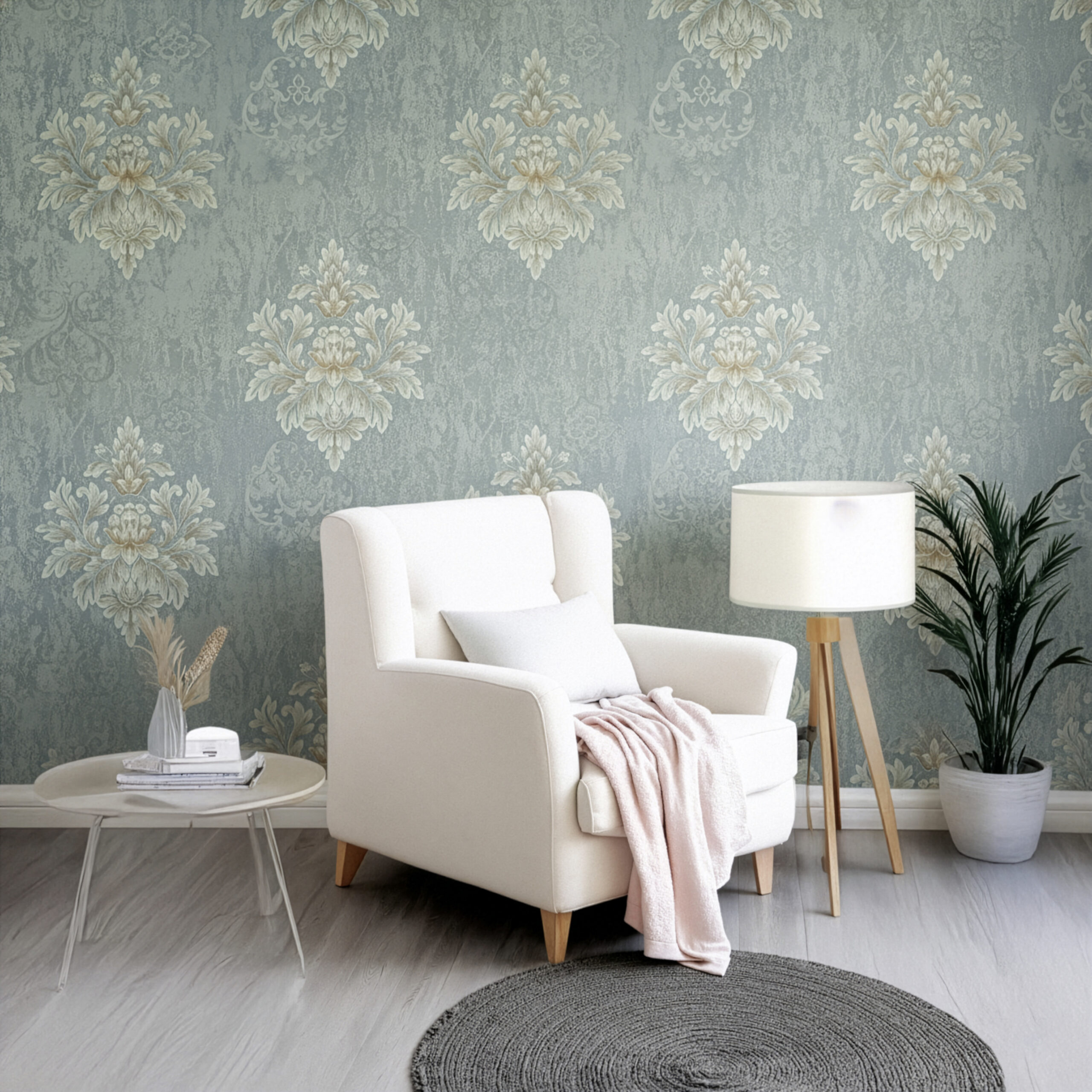 Light Sea Green Dmask Pattern Luxury Wallpaper
