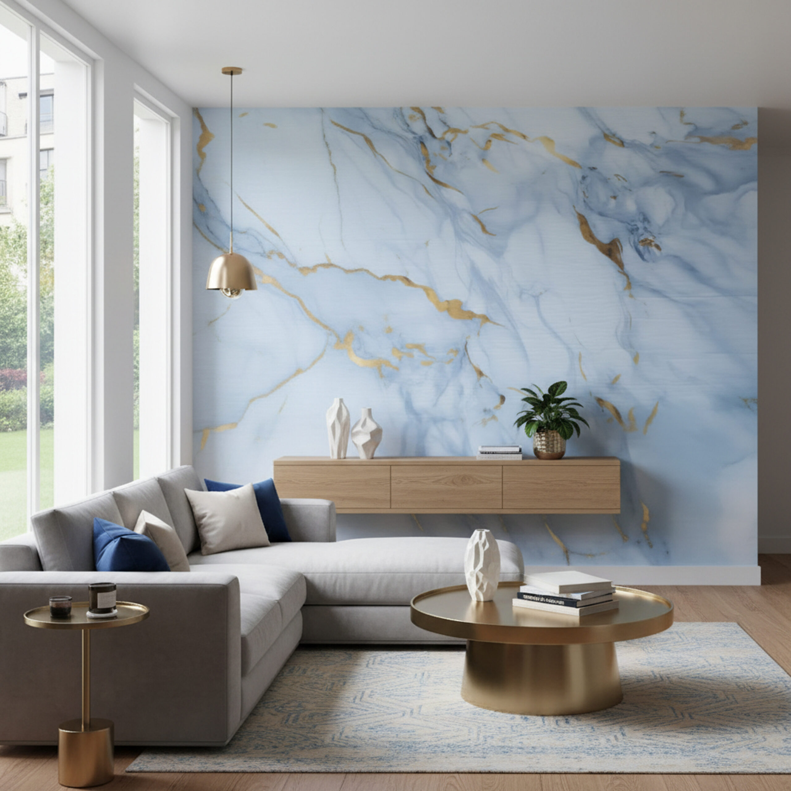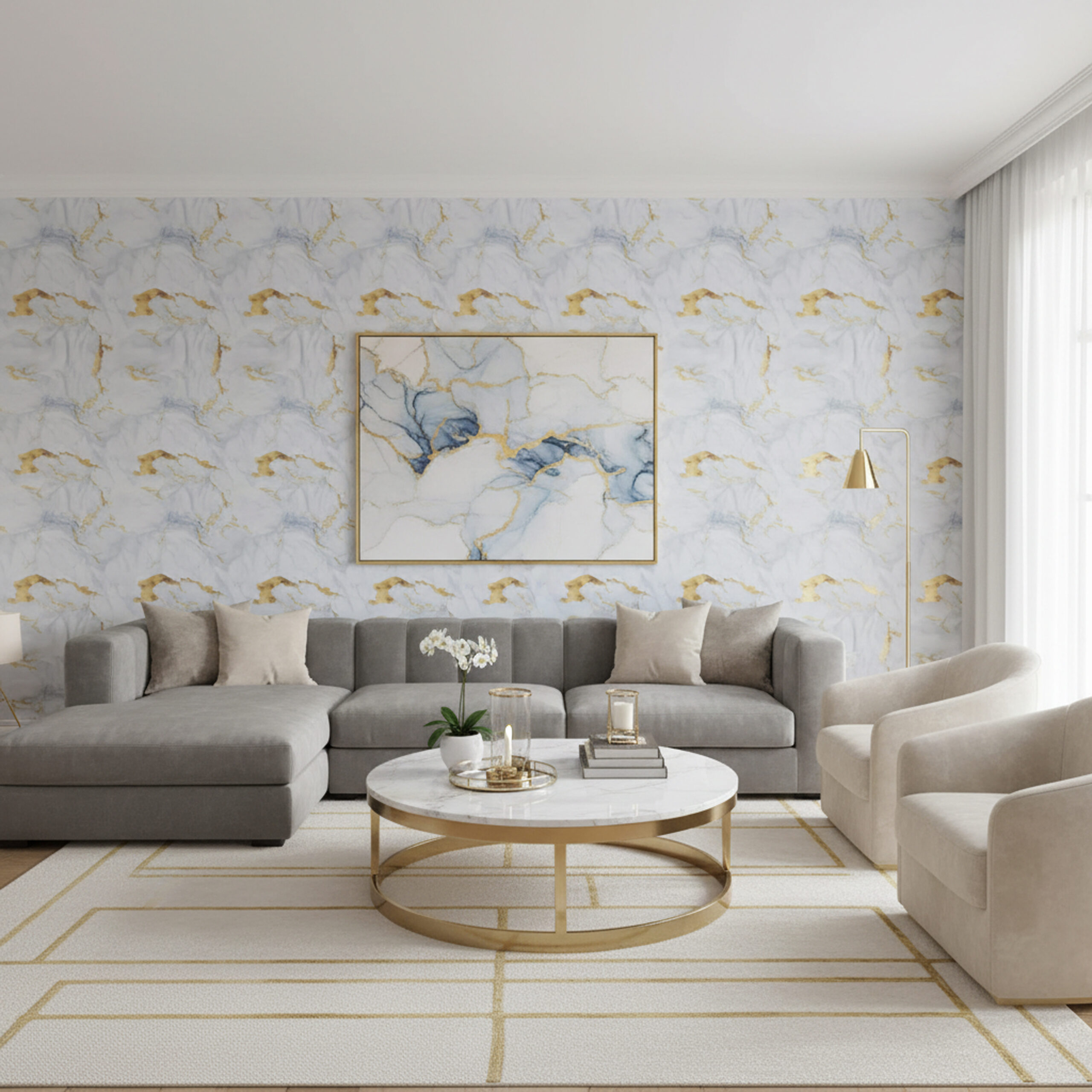 Off White Golden Lustrous Self Adhesive UV Marble Foam Sheet 10X4
